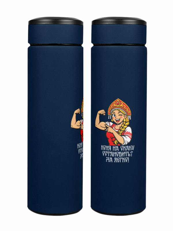 Термос «Русская девица-коня остановлю легко! (мем)»