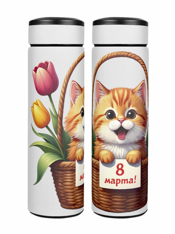 Термос «Котик с 8 марта»