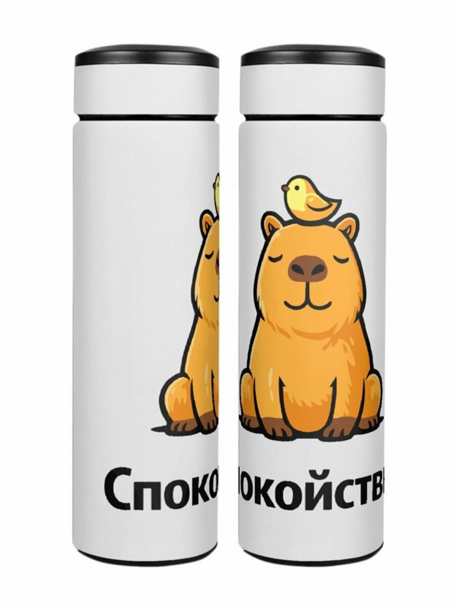 Термос «Капибара с птичкой Спокойствие»