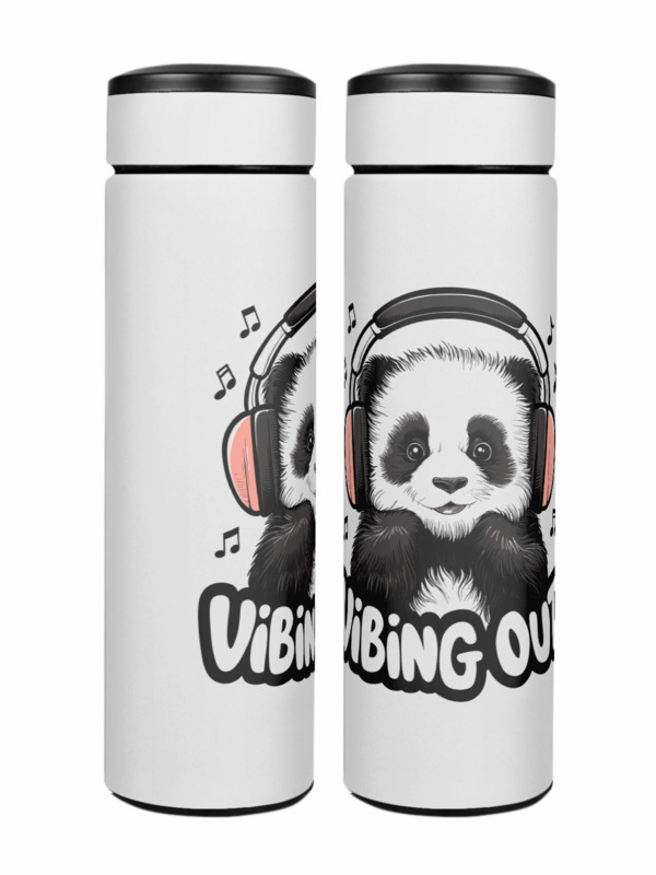 Термос «Медвеженок панды в наушниках - На вайбе»