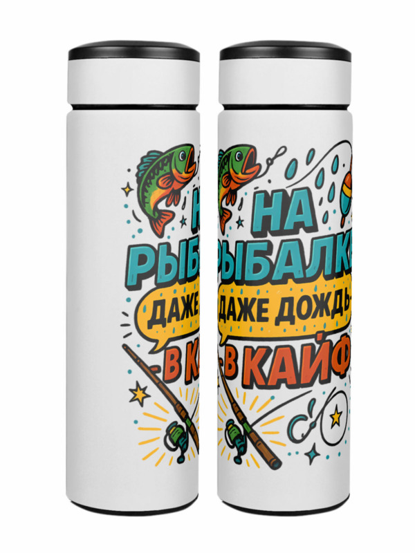 Термос «На рыбалке даже дождь в кайф»