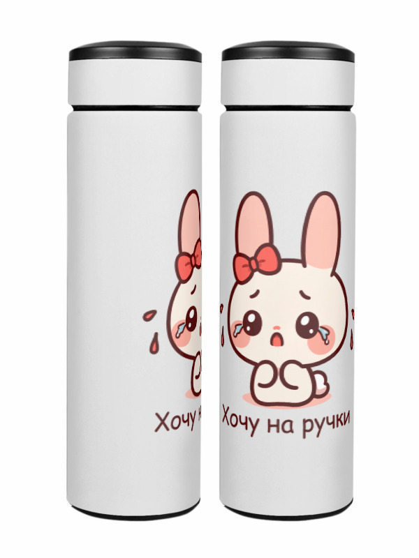 Термос «Зайчик. Надпись Хочу на ручки. Подарок подруге.»