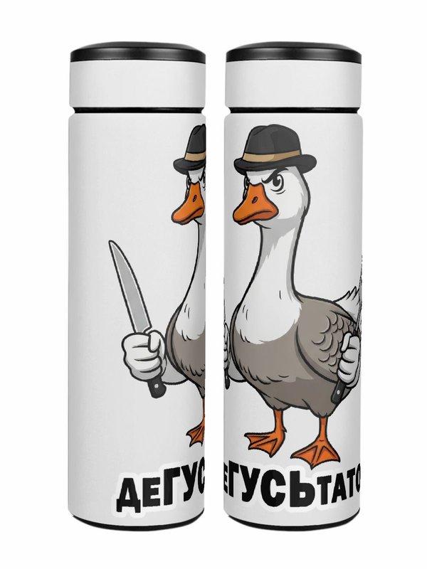 Термос «Гусь дегустатор с вилкой и ножом. Дегусьтатор»