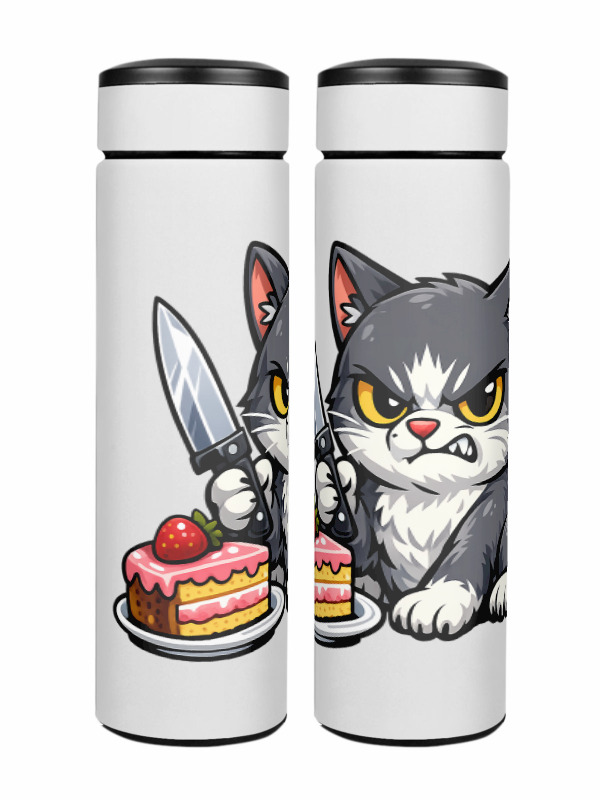 Термос «Кот с ножом-человек на 100 состоит из еды»