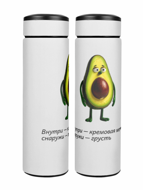 Термос «Грустный философ авокадо с цитатой»