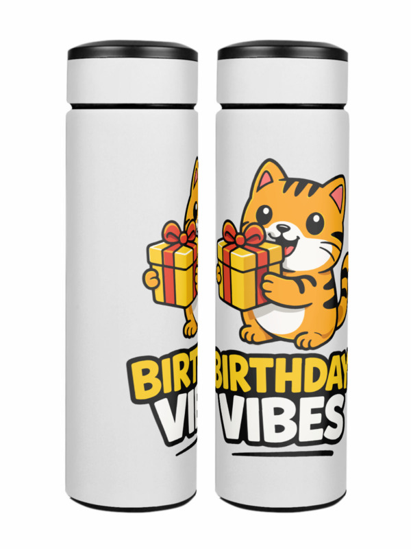 Термос «Кот с подарочной коробкой BIRTHDAY VIBES»