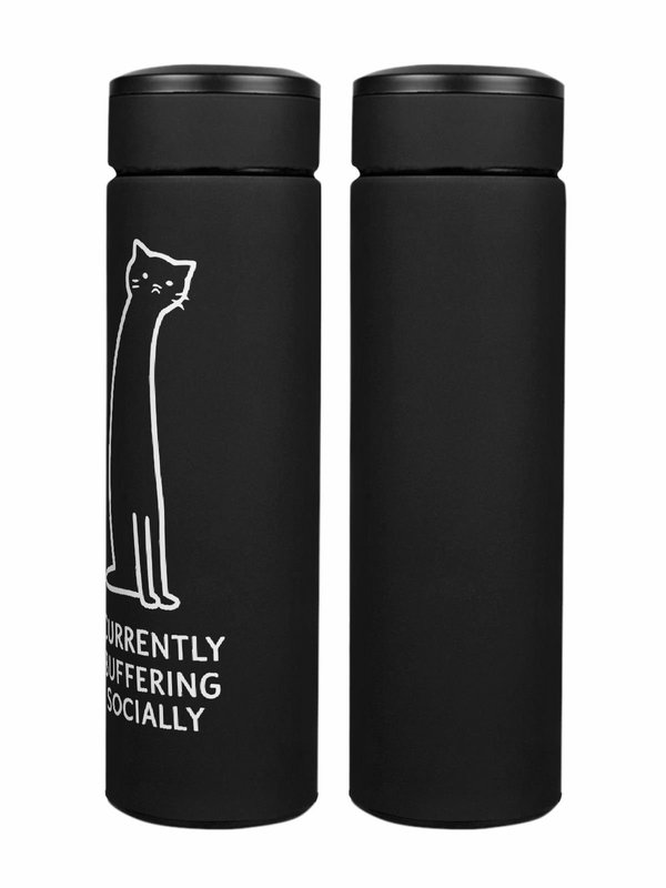 Термос «Кот с надписью CURRENTLY BUFFERING SOCIALLY»