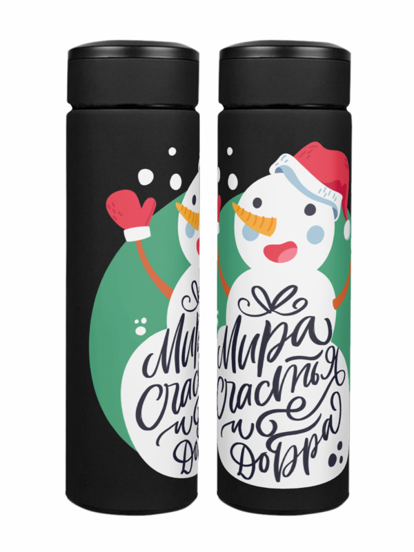 Термос «Новогодний снеговик - Мира счастья и добра»