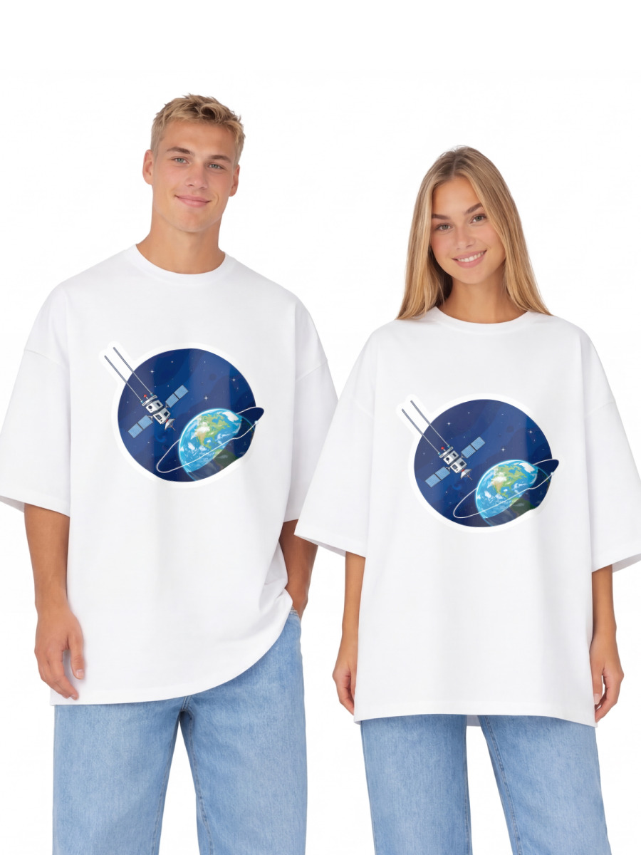 Футболка оверсайз «Спутник летит вокруг планеты»