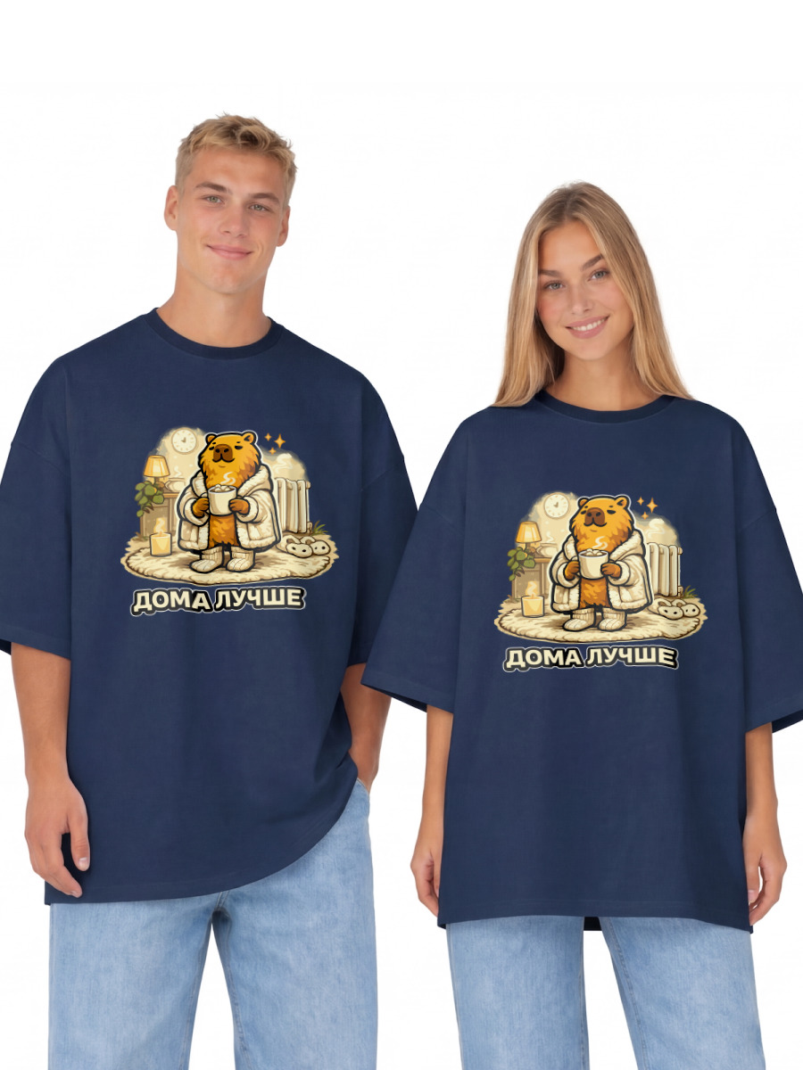 Футболка оверсайз «Капибара в носках ДОМА ЛУЧШЕ»