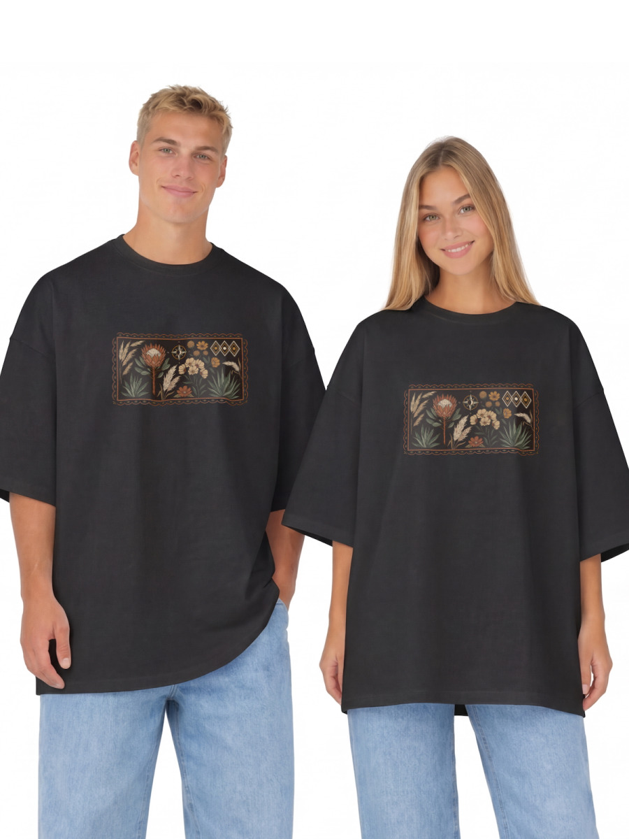 Футболка оверсайз «Этническое панно Протея, агава и компас»