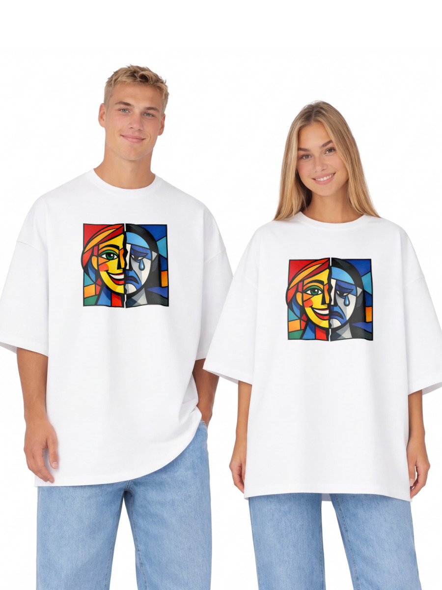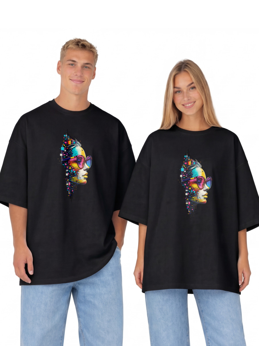 Футболка оверсайз «Лицо разделенное на геометрические фигуры»