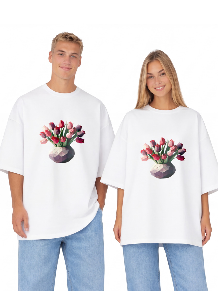 Футболка оверсайз «Графичные ромашки, милые цветы, минимализм»