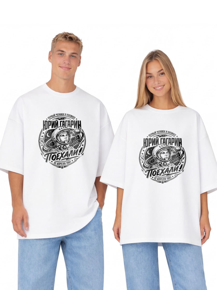 Футболка оверсайз «Юрий Гагарин Поехали! Через тернии к звёздам»