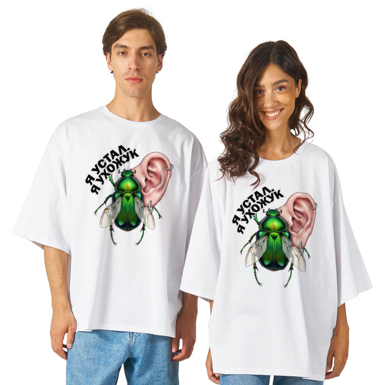 Футболка оверсайз «Улыбчивый зелёный жук»