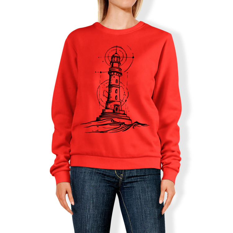 Женский свитшот «Маяк с волной. Абстракция, море»