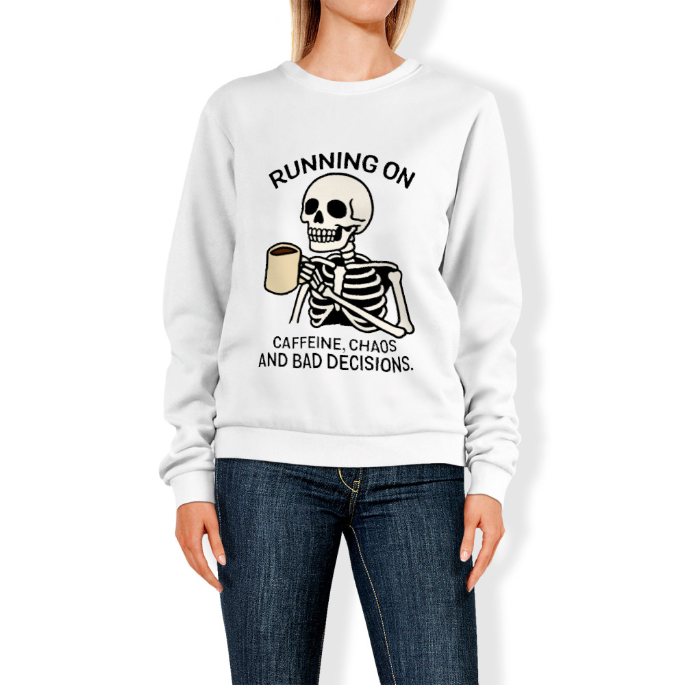 Женский свитшот «Скелет с кружкой: Running on caffeine»