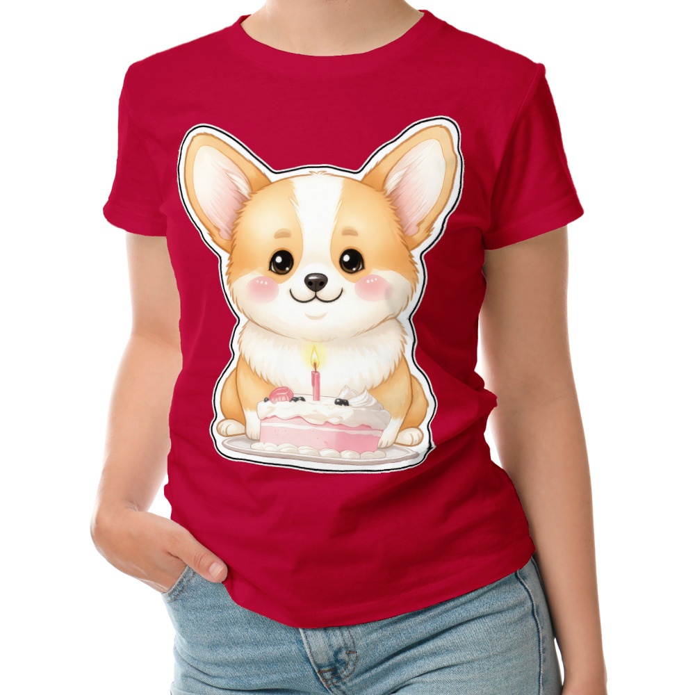 Женская футболка «С днём рождения корги»