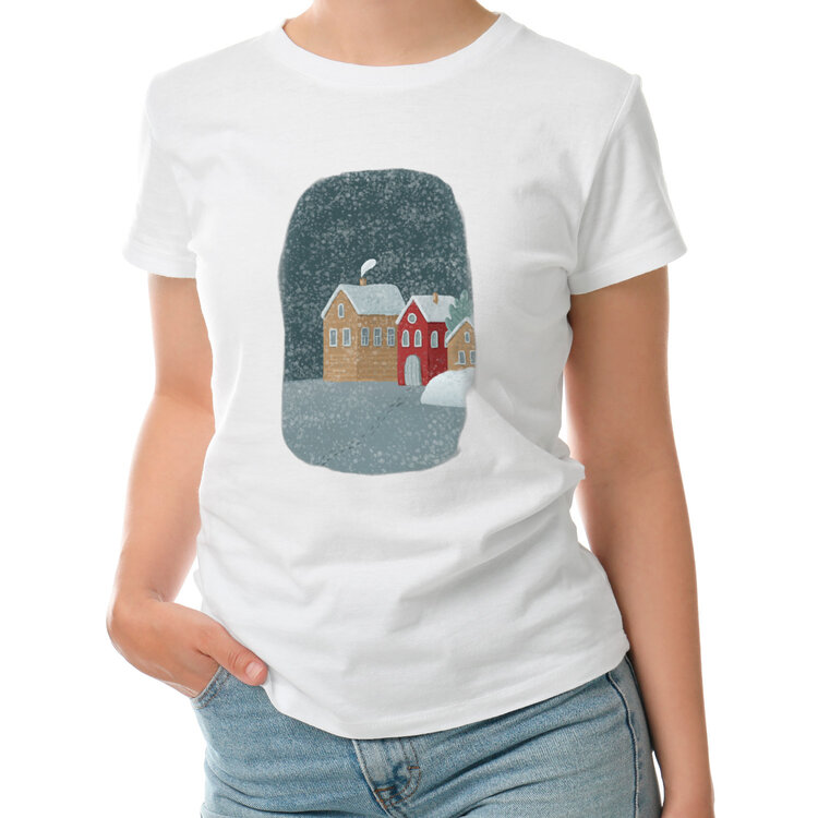 Женская футболка «Зимний пейзаж с домиком»