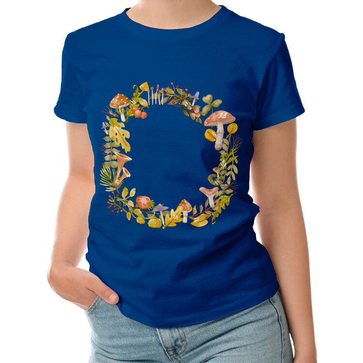Женская футболка «Красивый осенний веночек из трав, грибов и листьев»