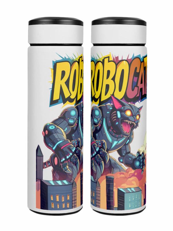 Бутылка для воды «Robocat робот кот разрушающих город комикс»