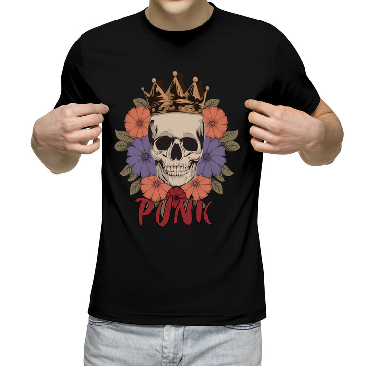 Футболка оверсайз «Панк череп и цветы надпись punk»