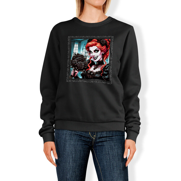 Женский свитшот «Готическая ведьма с чёрными розами»