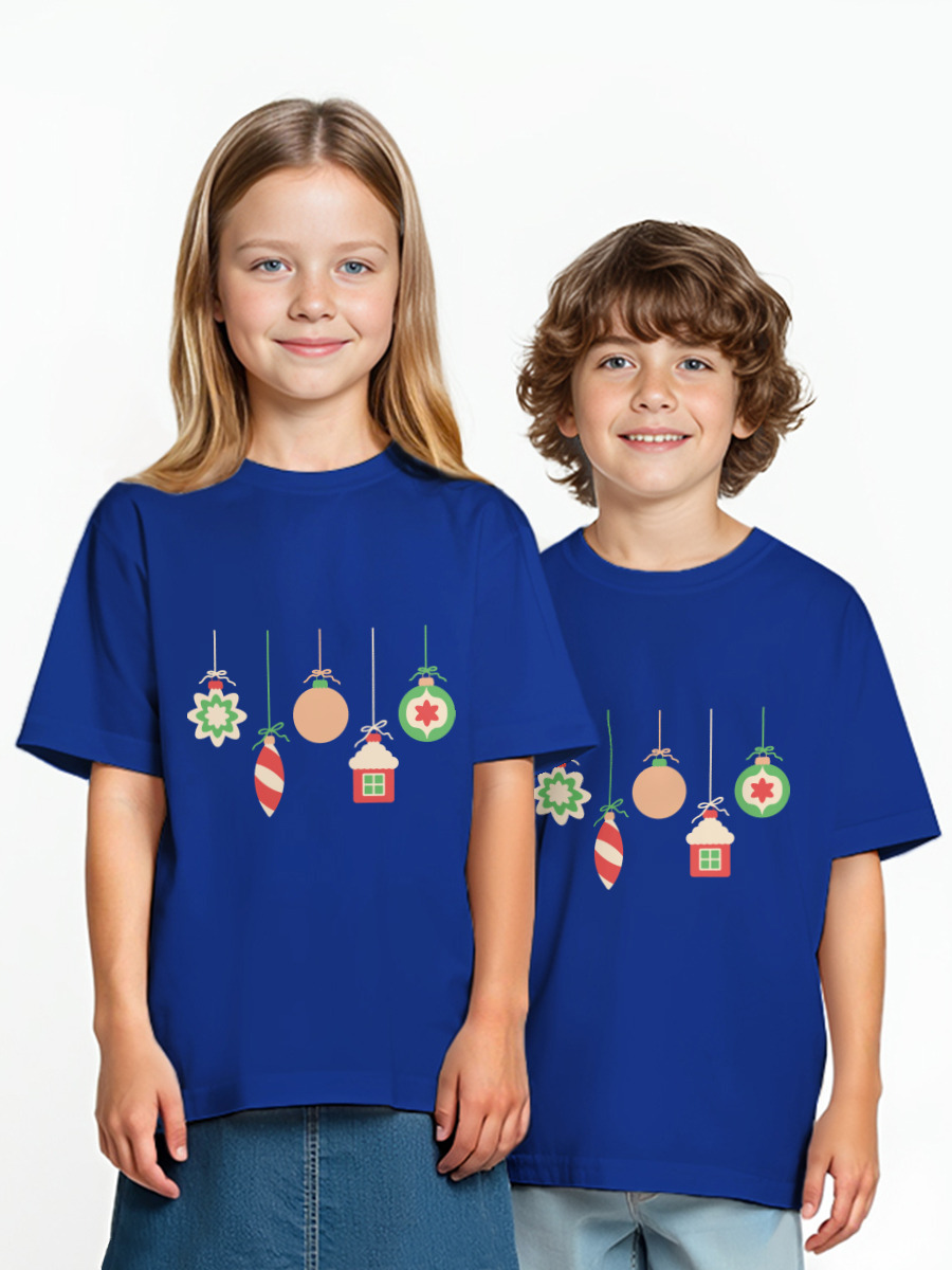 Детская футболка «Новогодние игрушки, домик»