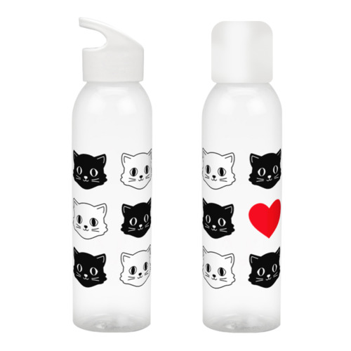 Бутылка для воды «Милые коты и сердце. Прикольный принт.»