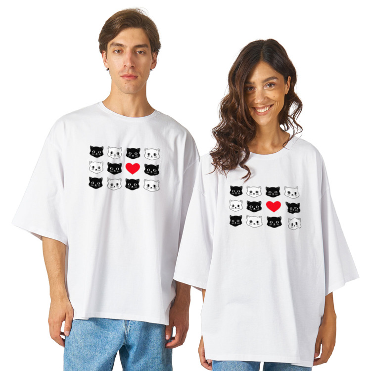 Футболка оверсайз «Милые коты и сердце. Прикольный принт.»