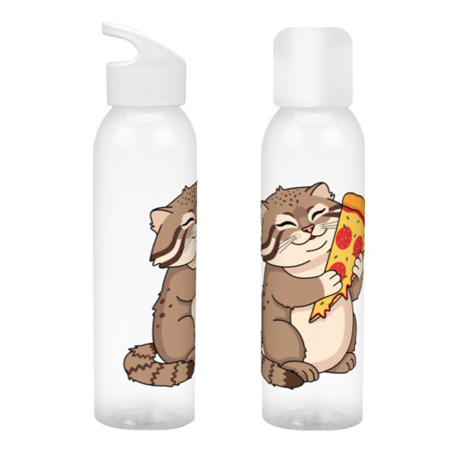 Бутылка для воды «Прикольный кот манул и пицца»