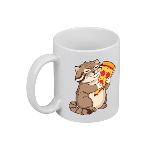 Кружка «Прикольный кот манул и пицца»