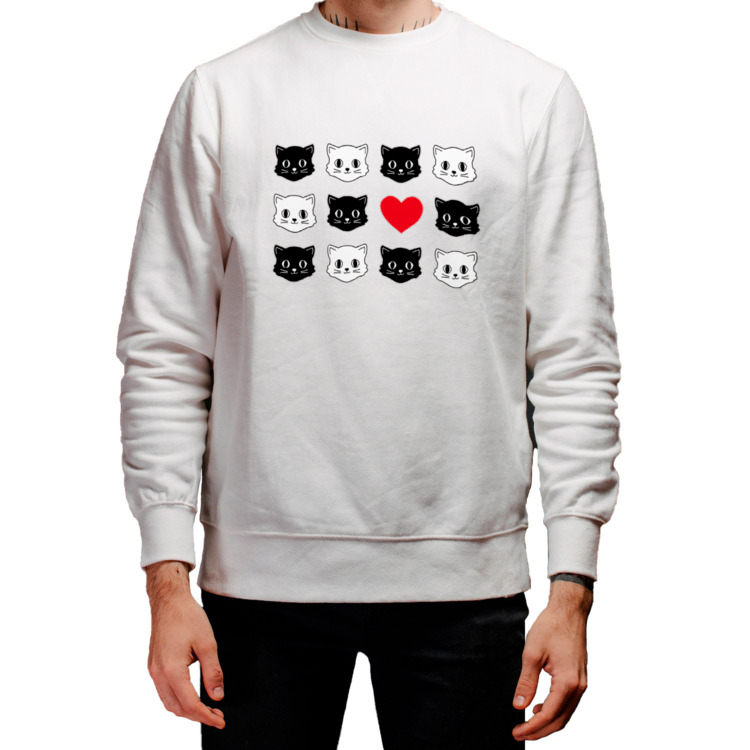 Мужской свитшот «Милые коты и сердце. Прикольный принт.»