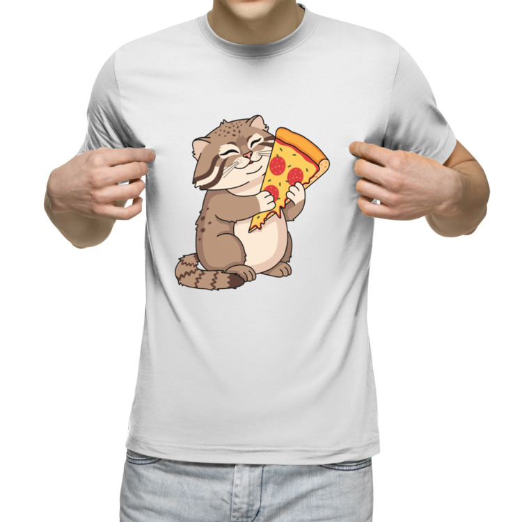 Мужская футболка «Прикольный кот манул и пицца»