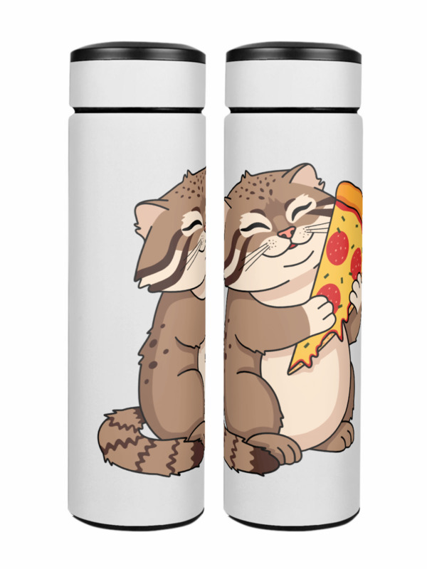Термос «Прикольный кот манул и пицца»