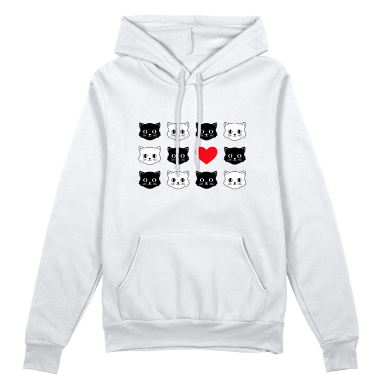 Худи оверсайз «Милые коты и сердце. Прикольный принт.»