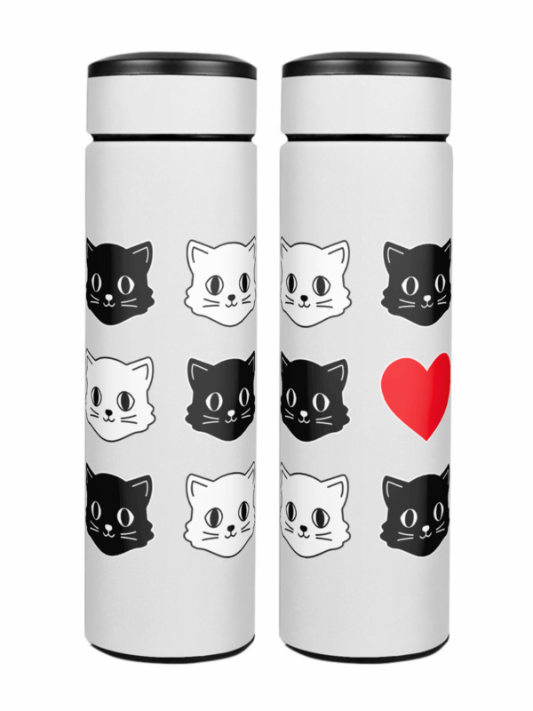 Термос «Милые коты и сердце. Прикольный принт.»