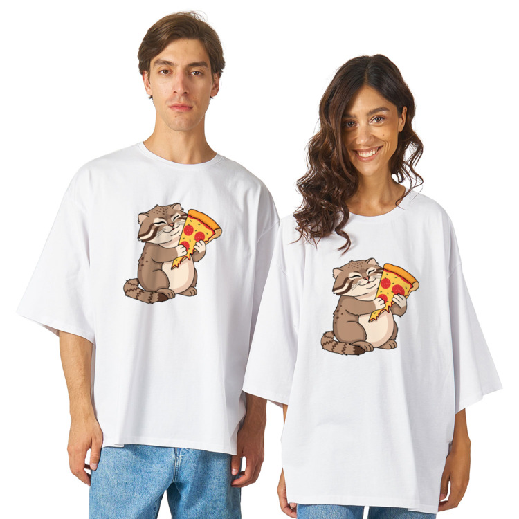 Футболка оверсайз «Прикольный кот манул и пицца»