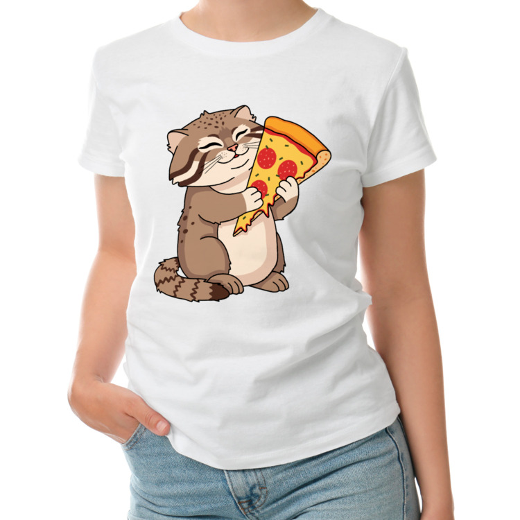 Женская футболка «Прикольный кот манул и пицца»