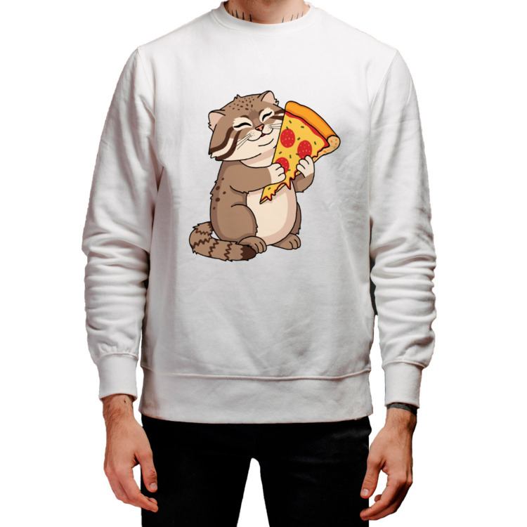 Мужской свитшот «Прикольный кот манул и пицца»