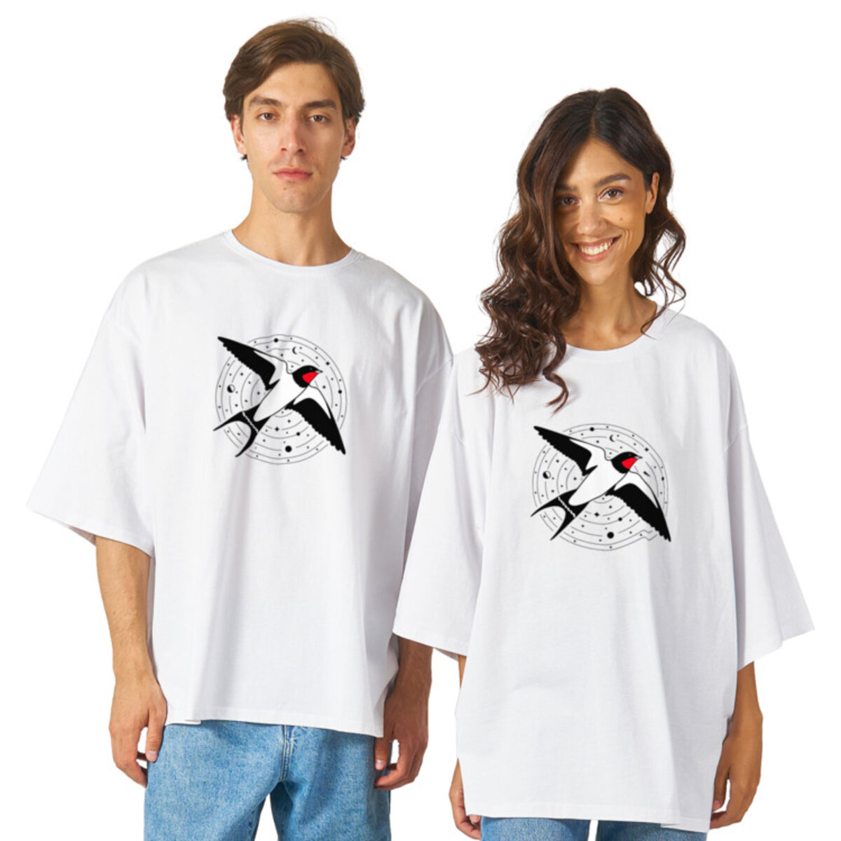 Футболка оверсайз «Ласточка и космос»