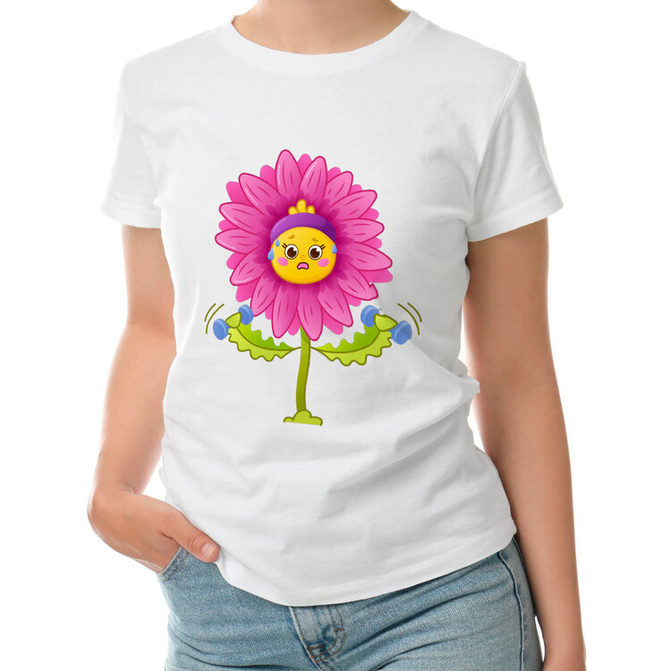 Женская футболка «Гербера и фитнес. Пора худеть»