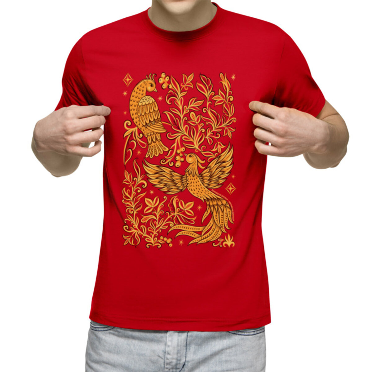 Мужская футболка «Вологодский мотив в стиле шекснинской золоченки.»