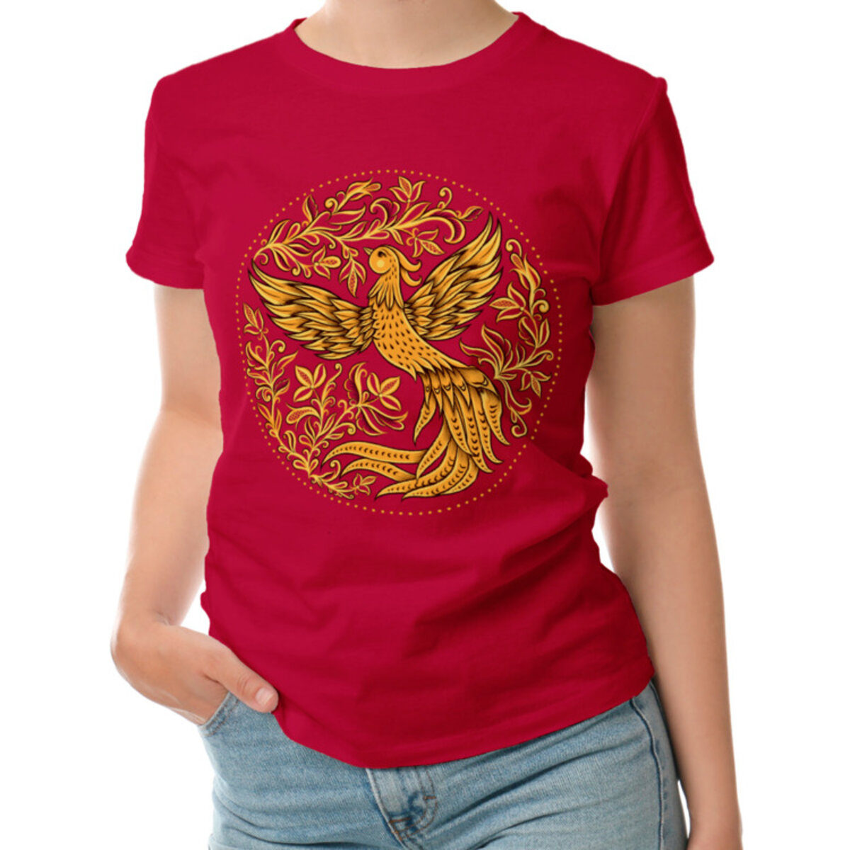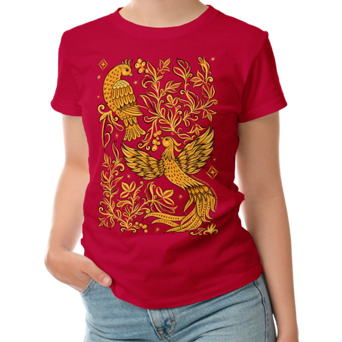 Женская футболка «Вологодский мотив в стиле шекснинской золоченки.»