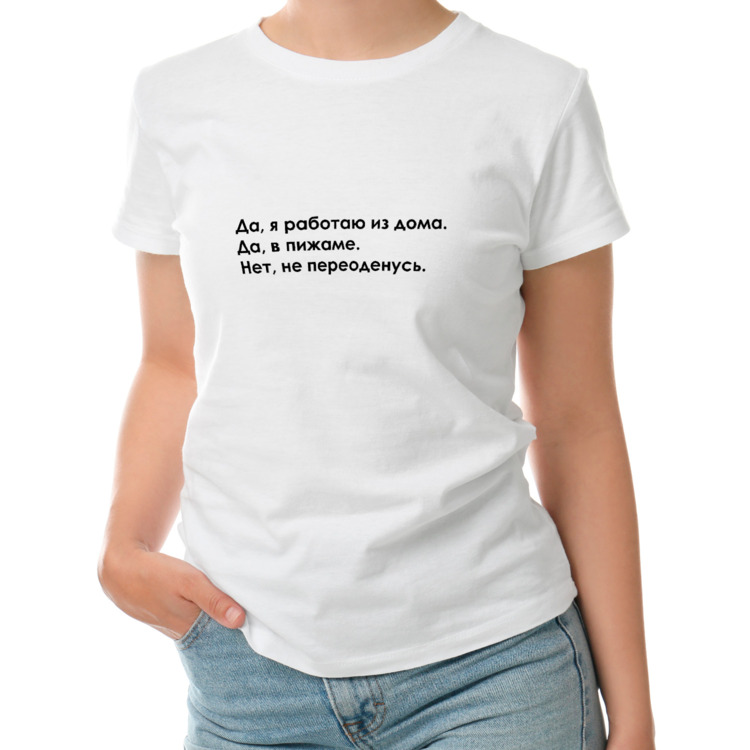 Женская футболка «Да я работаю из дома в пижаме, нет не переоденусь»