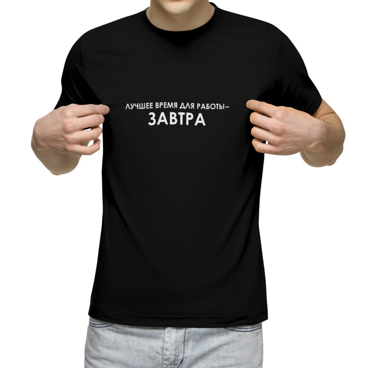 Мужская футболка «Лучшее время для работы завтра, надпись прикол»