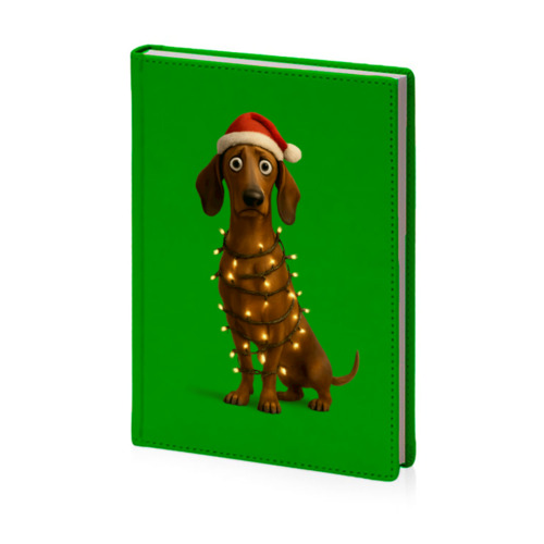 Ежедневник «Удивленная новогодняя такса в гирлянде»