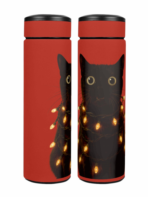 Бутылка для воды «Смешной черный кот в гирлянде»