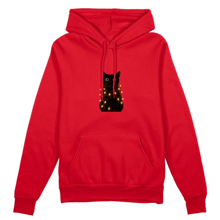 Мужская толстовка «Смешной черный кот в гирлянде»