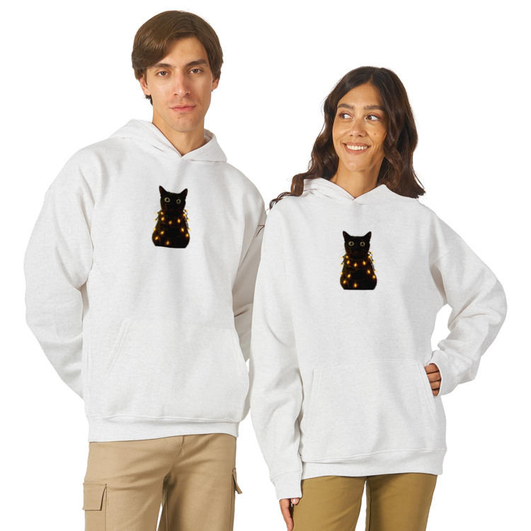 Худи оверсайз «Смешной черный кот в гирлянде»
